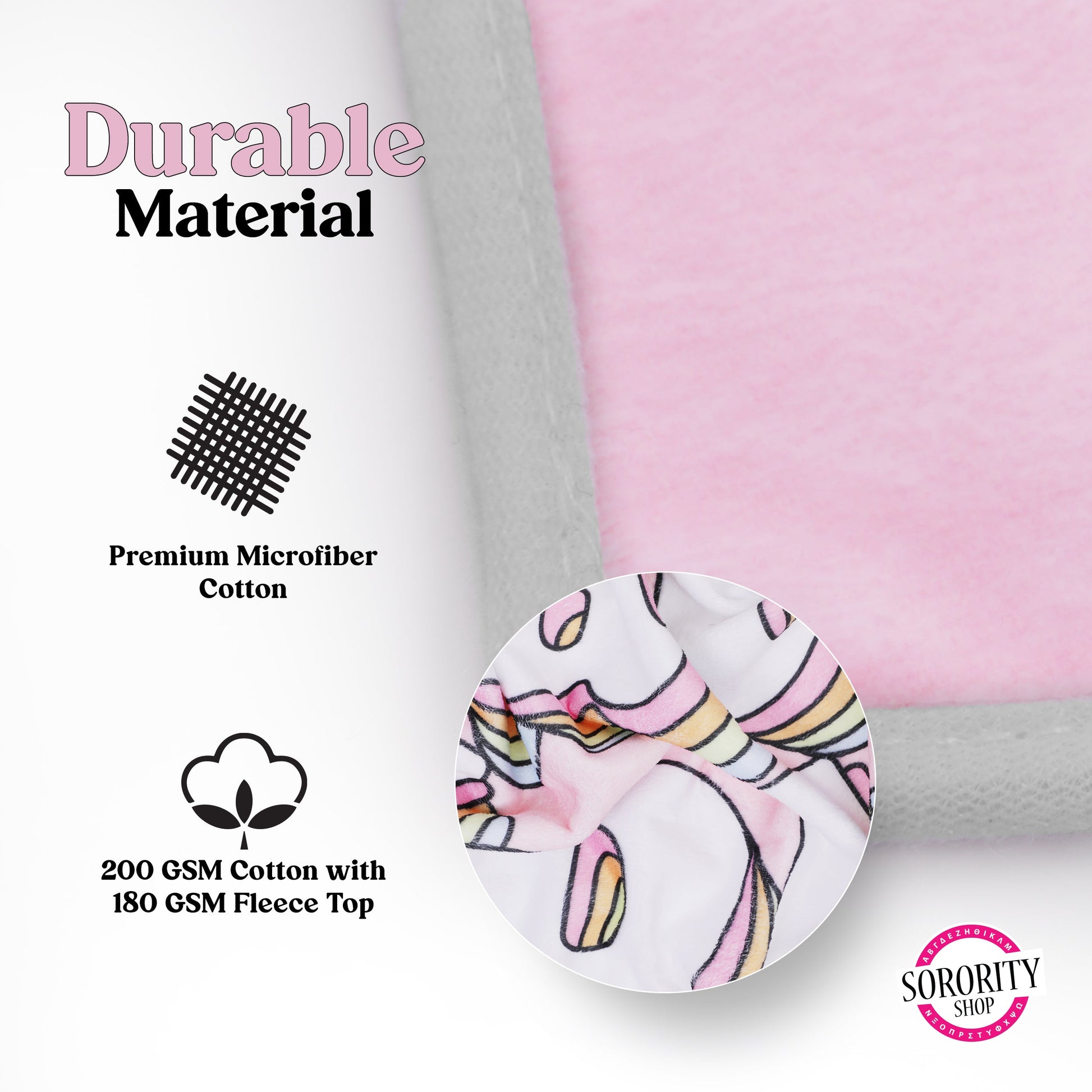 - DURABLE MATERIAL: Made of premium microfiber plush cotton. Made of 200 GSM Cotton, with a 180 GSM Fleece Top, providing a soft absorbent cotton material with quality printing.
