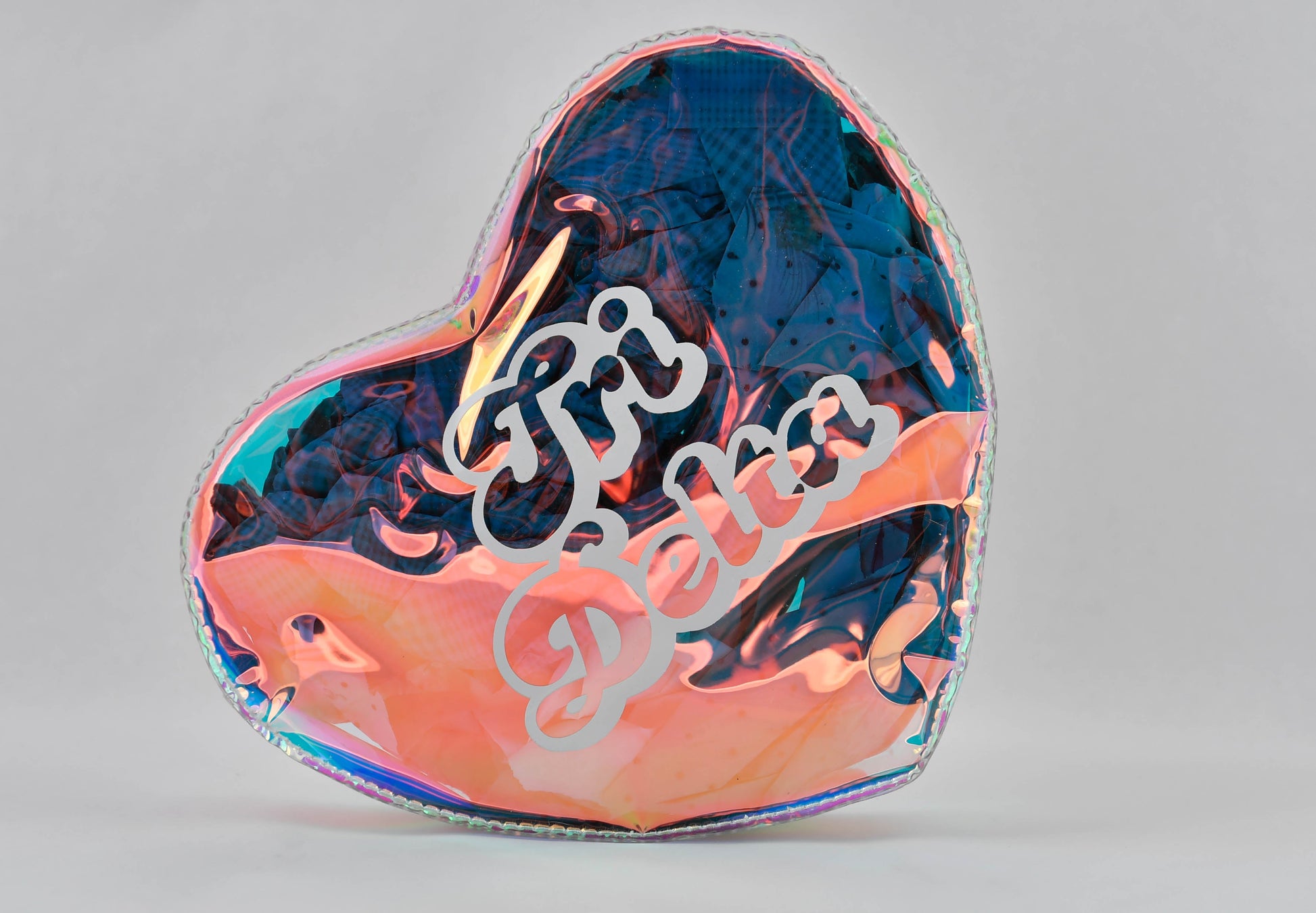 Take all your essentials on the go with our Heart Shaped Sorority Makeup Bag! Our makeup bag is made from holographic vinyl and features your sorority name in Retro white script. With a zipper enclosure to keep all your items secure, and designed in the cutest heart shape, our bag is a functional, giftable and fashionable addition to your sorority swag!
