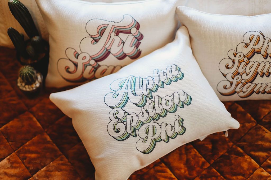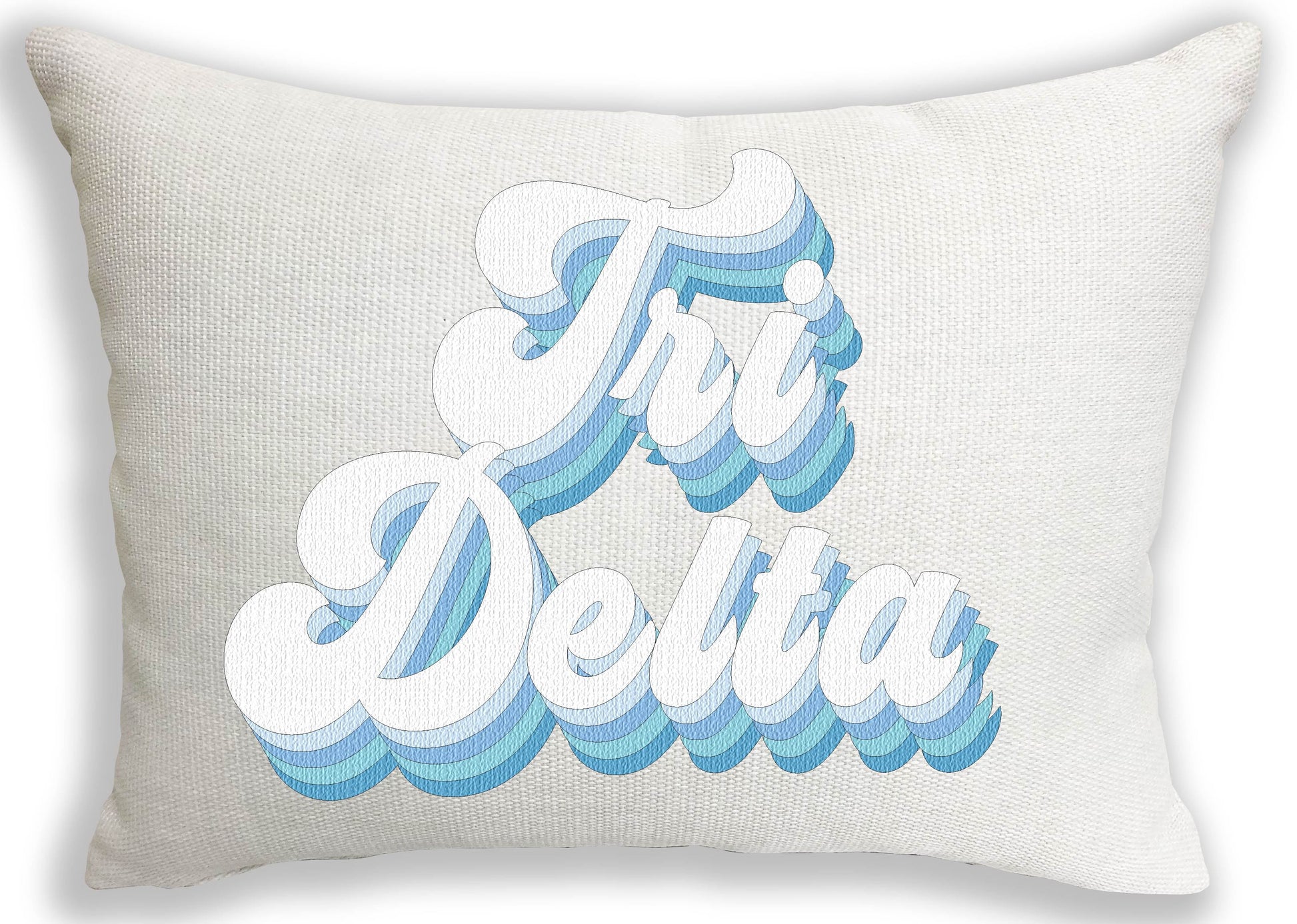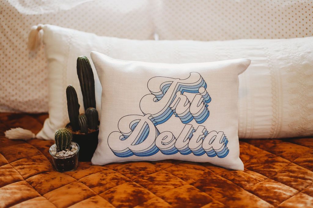 Go Greek with our Delta Delta Delta Retro Throw Pillows; perfect for your dorm, bedroom or sorority suite!