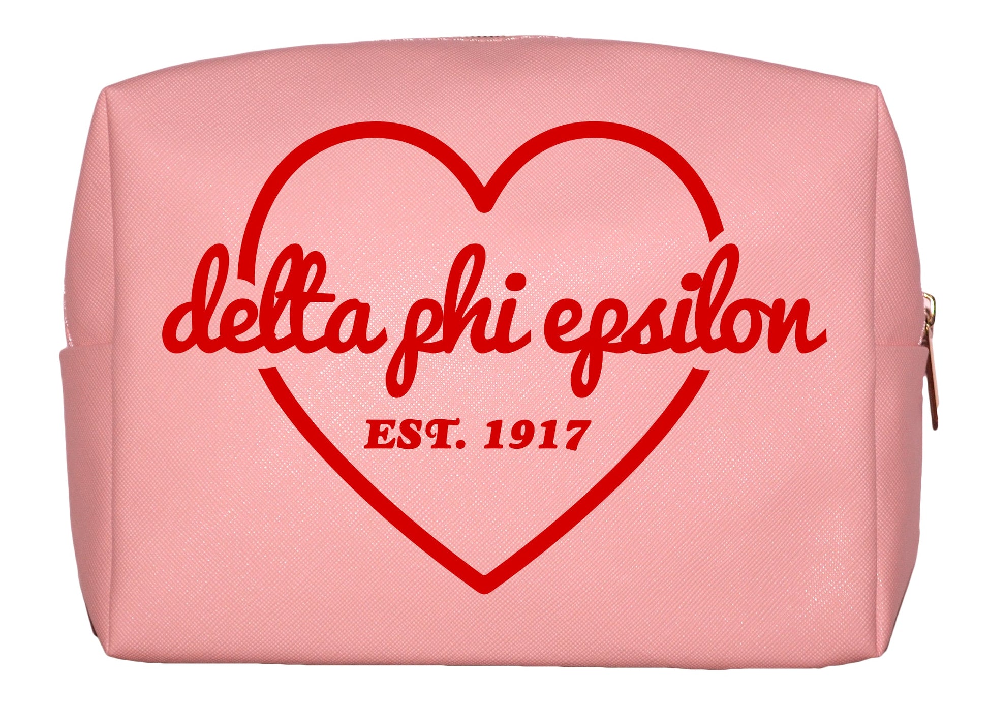Delta Phi Epsilon Pink w/Red Heart Makeup Bag