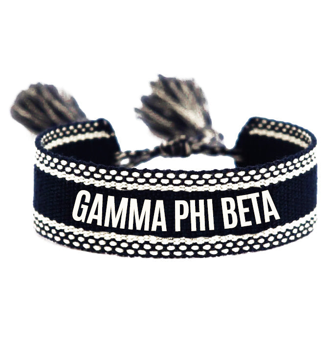 Gamma Phi Beta Woven Bracelet, Black and White Design