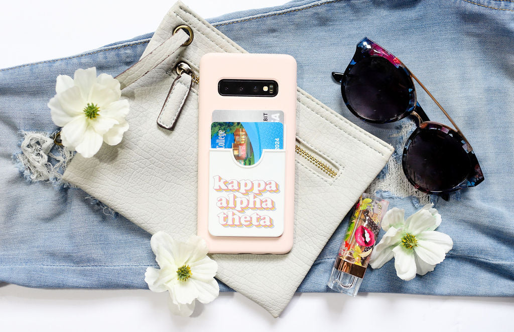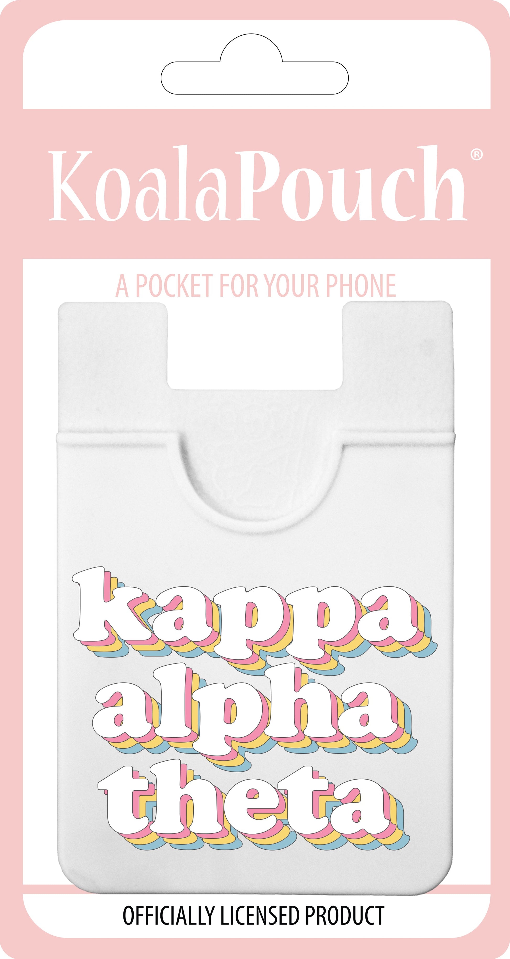 Show your sorority pride with the Retro Koala Pouch, adhesive cell phone wallet, the perfect solution for the multitasker on the go! This silicone white pouch is printed with your sorority name with a retro flair and fits on the back of most phones and cases. Keep all of your valuables safe and secure in one place - no need for bulky bags or purses. The Retro Koala Pouch will securely hold up to 3 cards at a time and helps you with gripping your device as well.