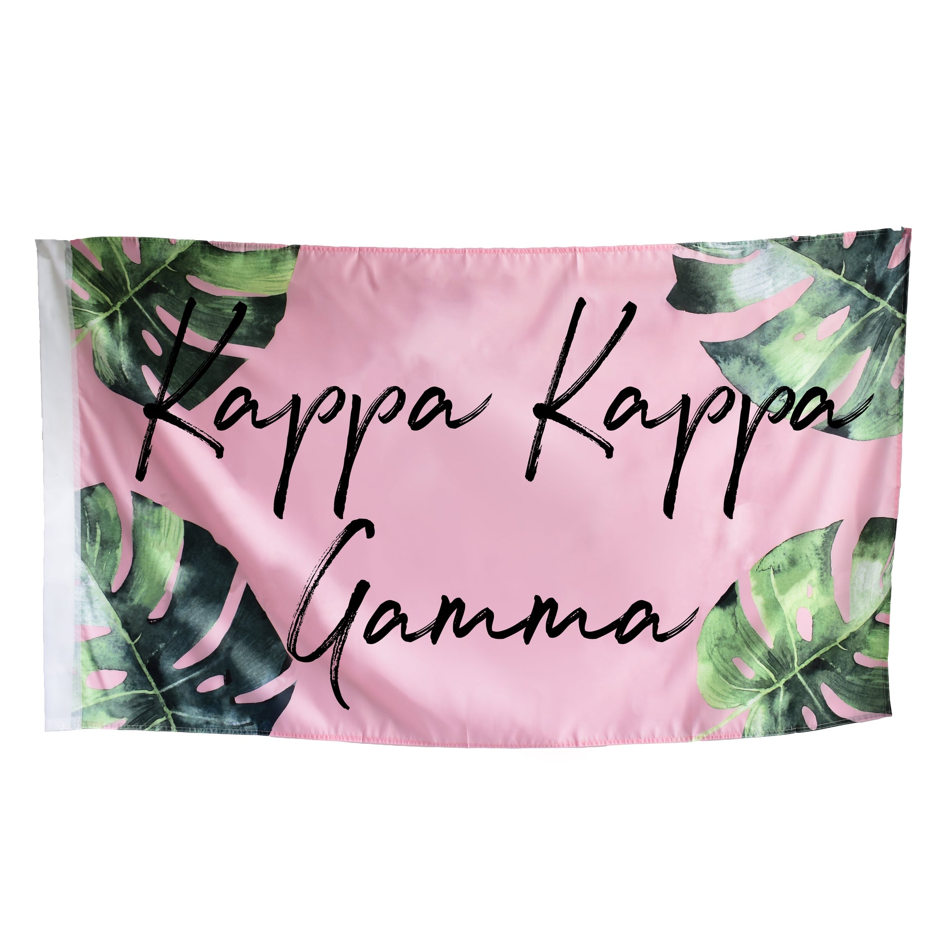 Show your Kappa Kappa Gamma pride anywhere with these brightly colored sorority flags. A generous 60" x 36", constructed of sturdy nylon, they are perfect for indoor and outdoor use. Each sorority has three designs from which to choose: Succulent, Tropical Palm or Retro Design! They are easily wall-mounted but we have also included a convenient pole-sleeve for traditional flag pole use.