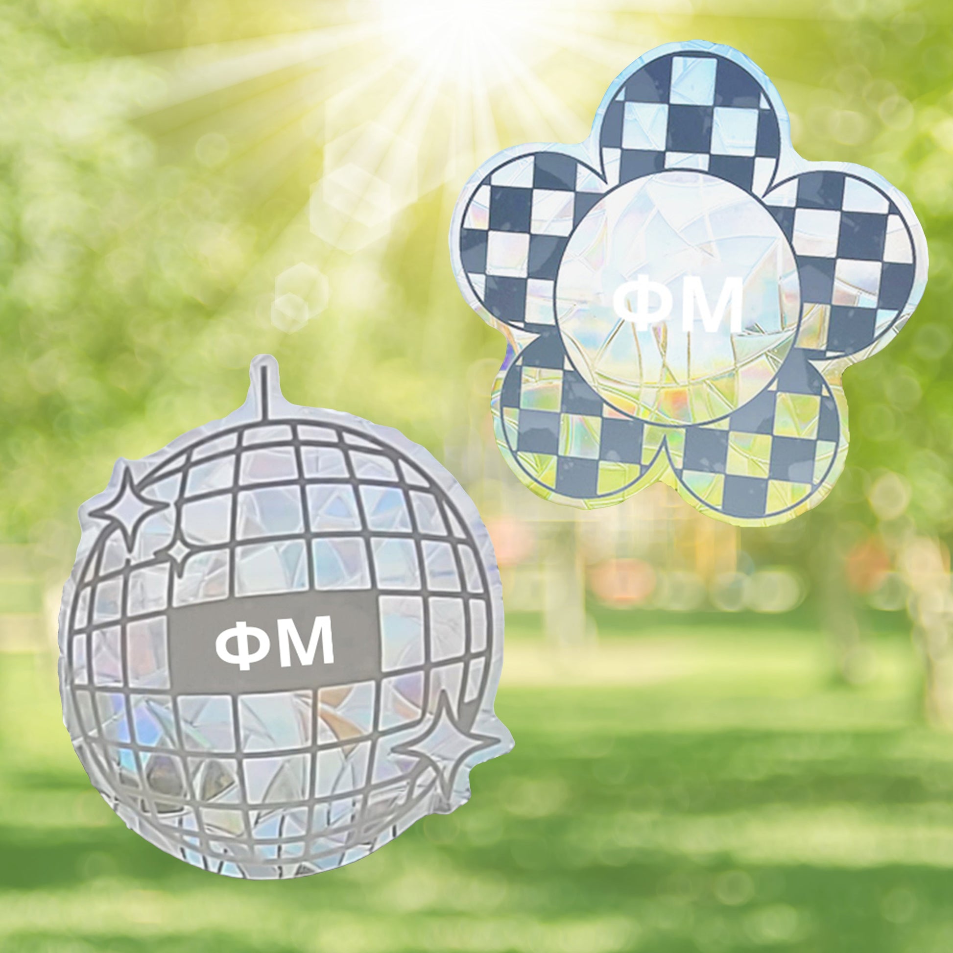 Phi Mu Suncatcher Decals- Set of 2: Flower & Disco Ball