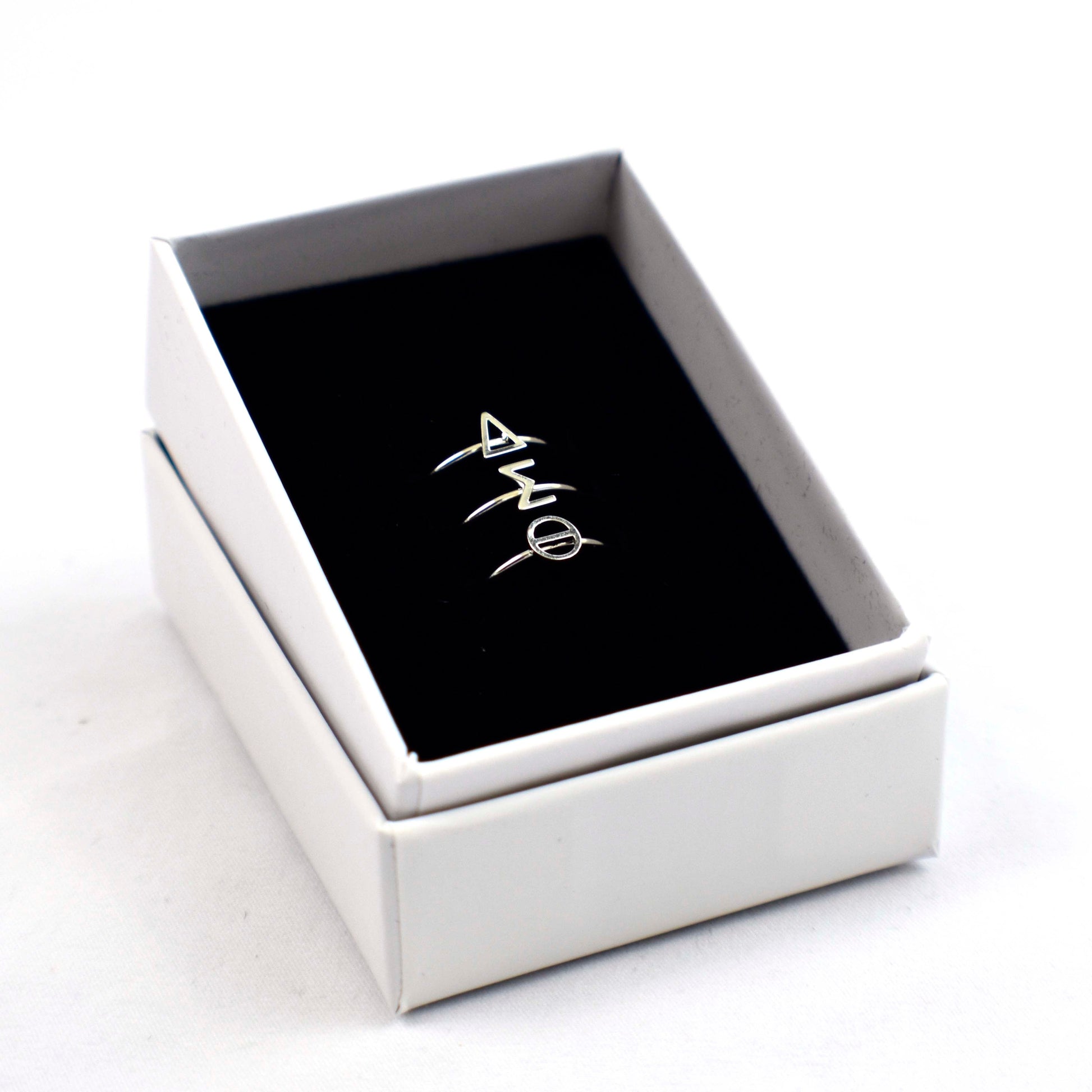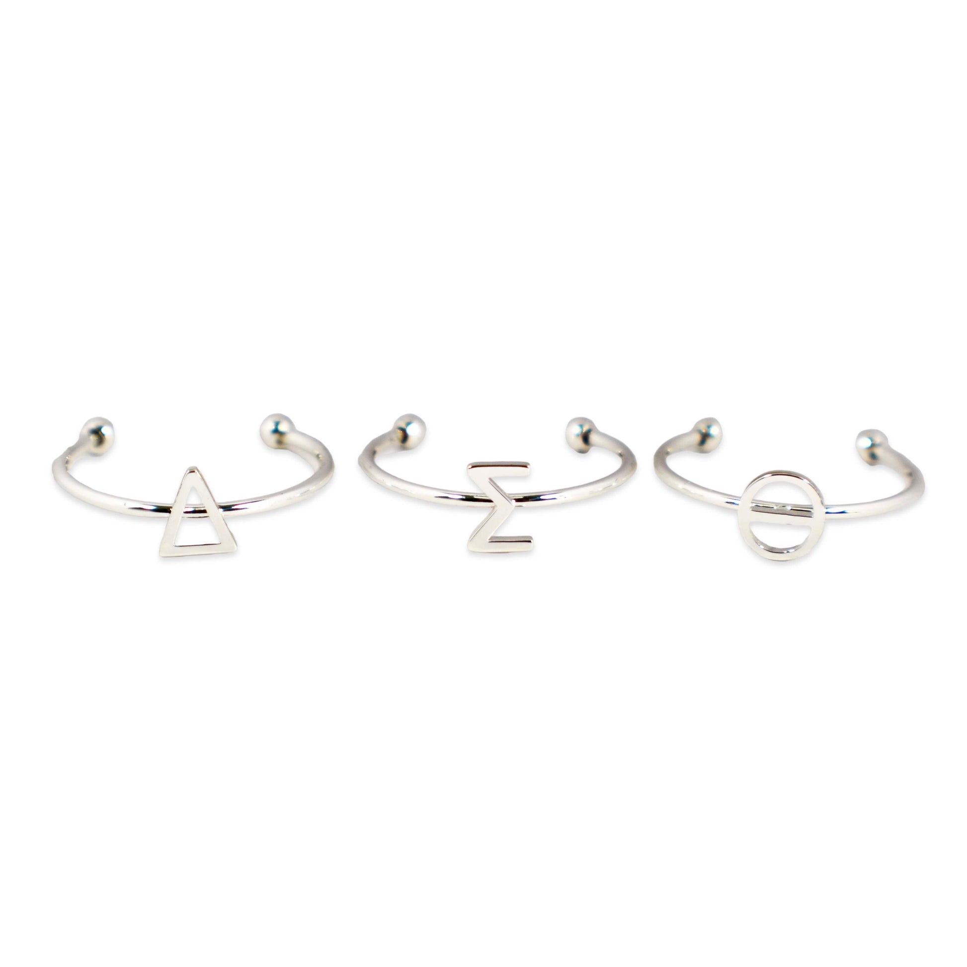 Sorority pride is in the air! Show off your Sigma Kappa sisterhood with these personalized stack rings made of stainless steel and plated with silver. They're perfect for continued wear at home or on campus. The adjustable size of these sorority stackable letter rings means they can be adjusted to fit most fingers. Buy these great stacking rings for yourself or gift it to your sorority sisters on bid day, as big little gifts, events, or birthdays. Showcase your association with these fantastic silver-plated rings.